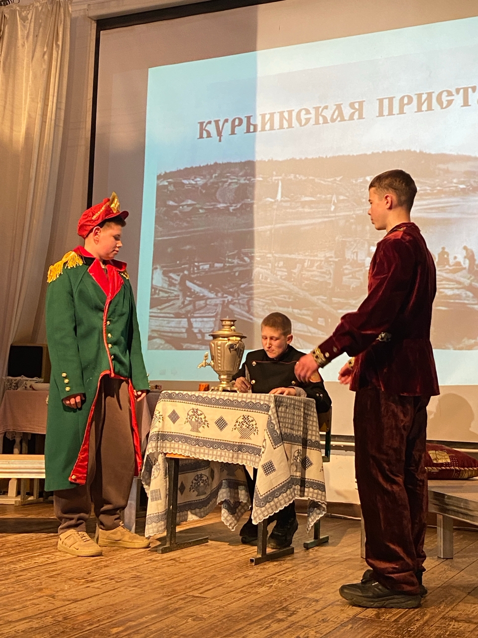 7–8 классы показали презентацию музея «Мещанский быт». Школьники продемонстрировали интерьер городской комнаты в доходном доме конца XIX — начала XX века. Были представлены предметы ежедневного обихода: самовар, посуда, мебель, портреты, модные вещи того времени. Презентация сопровождалась слайдами и короткими рассказами досуге и рабочем укладе городской семьи, что помогло зрителям увидеть противоположность деревенскому укладу.